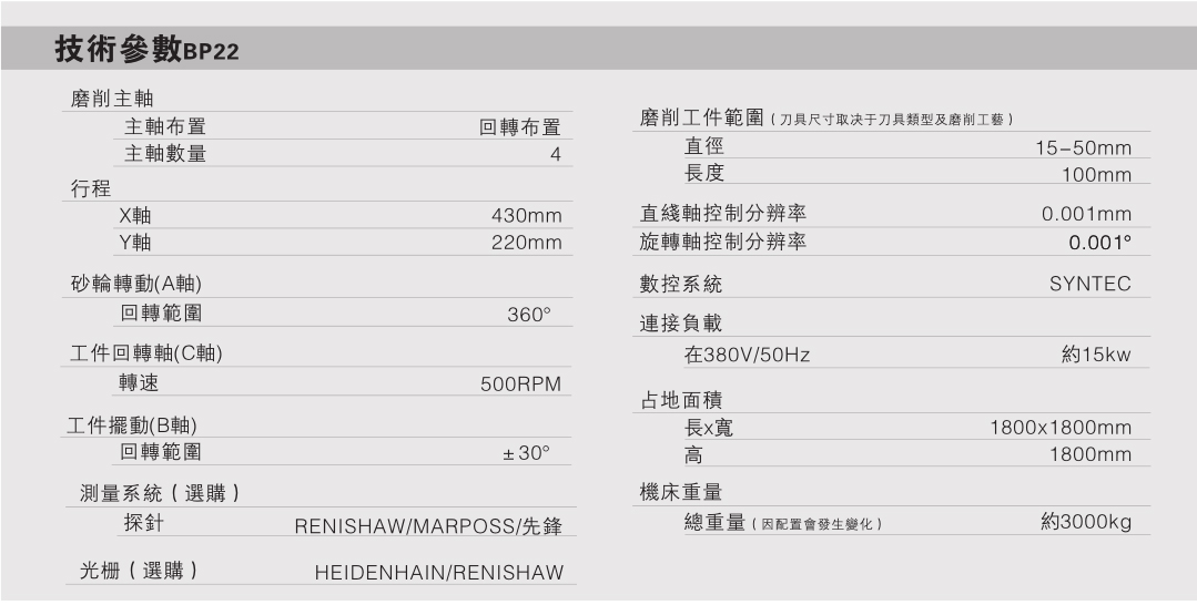 增大小批量零件加工之靈活性,從而生產高精度的零件最多可裝備四磨頭,滿足多面加工及要求內外同心精度高之工件需求。