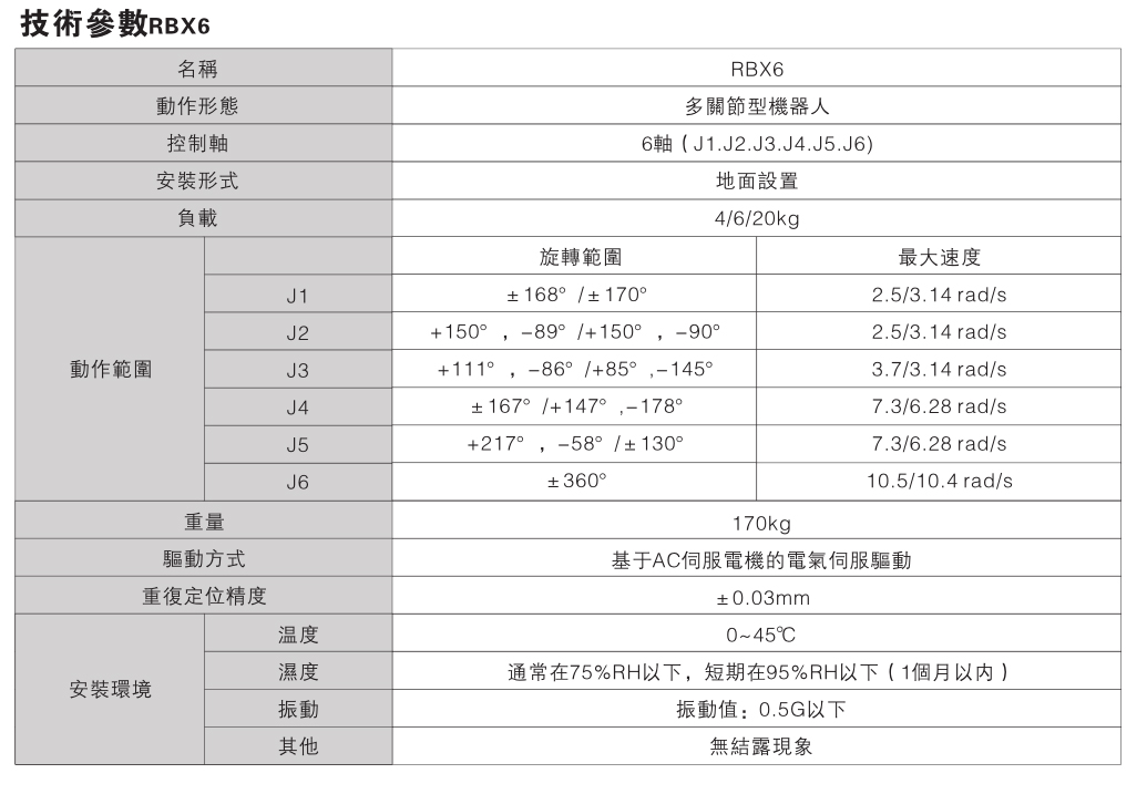 RBX6 六軸機器人